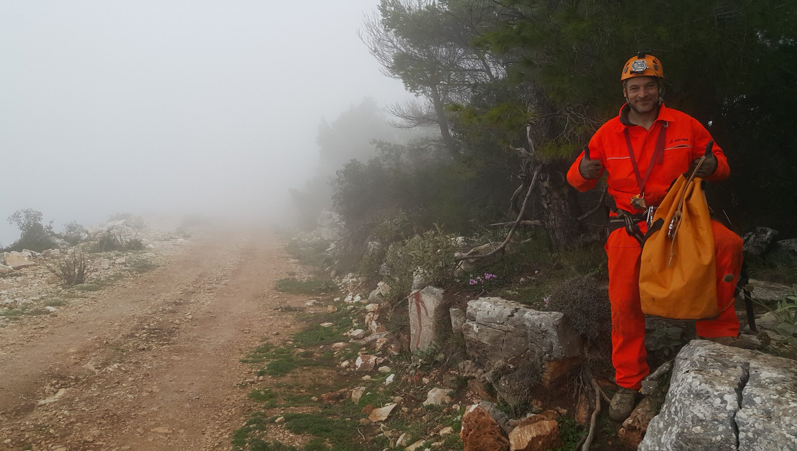 Το τοπίο που αντικρύσαμε στην επιφάνεια το απομεσήμερο που βγήκαμε, ήταν μια χαμηλή νέφωση, πυκνή μέχρι τα 400 μέτρα υψομέτρου, άπνοια και ησυχία. Βουνήσια ατμόσφαιρα κανονική!